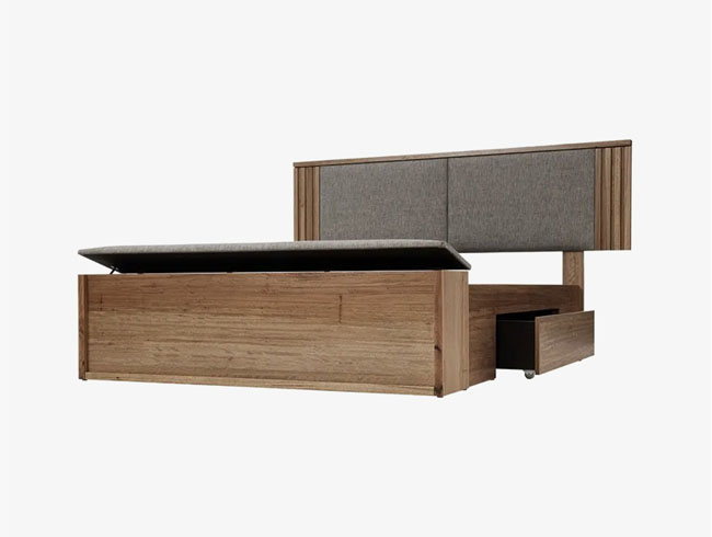Available in an east-west drawer base, east-west draw blanket box foot base, full panel foot base, blanket box base, gas lift base, blanket box gas lift, or a floating foot base design – perfect for extra storage in your home.